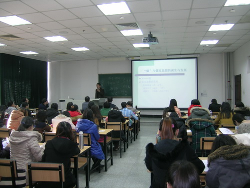 赵利民教授首先谈及了始于上世纪 80 年代的中国文论话语“失语症”现象,并以此为背景,对近年来兴起的国学和本土文化热进行了解读,引出儒家思想的现代意义这一学术话题,然后,从“儒与儒家思想的发展”,“儒家思想与中国古代伦理型文化”,“内圣外王与社会担当”三方面进行了阐释。赵教授以“感性”和“理性”为参照,构织脉络,将厚重的中国古代儒学发展进行阶段化和逻辑化解读,并穿插每一阶段独有的文化社会现象来进行佐证。赵教授除进行中国传统儒学的纵向性分析外,还通过横向对比的方式,在世界文化语境下考察中国儒学,对“内圣外王”、“儒家是一种宗教”等命题从中西文化和文论对比的视角进行阐释。最后,赵教授以“诗可以怨”分析和总结了儒家思想的社会价值和现代意义。