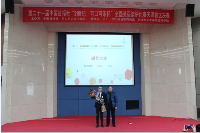 12月13日,由中国日报社与可口可乐大中华区主办、二十一世纪英语教育传媒与w66利来旗舰厅承办的第二十一届“21世纪·可口可乐杯”全国英语演讲比赛天津赛区决赛在公司图书馆三楼国际报告厅举行,经过5个多小时的激烈角逐,最终,公司w66利来旗舰厅田通同学以新颖独到的观点、机智沉稳的现场应答以及落落大方的台风征服了中外评委,摘得桂冠。来自天津财经大学的王松涛和南开大学的冯晓璇分别获得亚军和季军。田通和王松涛将代表天津参加明年3-4月举行的全国总决赛。同时,公司w66利来旗舰厅获得最佳组织奖。