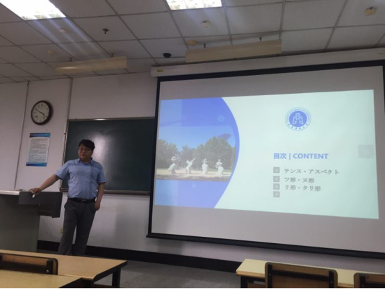 本次大赛共有杨斌、杨拓、倪娜、巩佳芳四位教师参加,参赛内容涉及日语、法语两个语种。比赛中,参赛教师准备充分,精神饱满,用语规范,教态自然、大方;教学内容充实,讲解思路清晰,重点突出;课件设计精美,师生互动到位。各位评委对每位参赛教师都一一做了点评,对四位教师的教学内容选择、互动环节设计、板书设计、教态等提出了意见和建议。