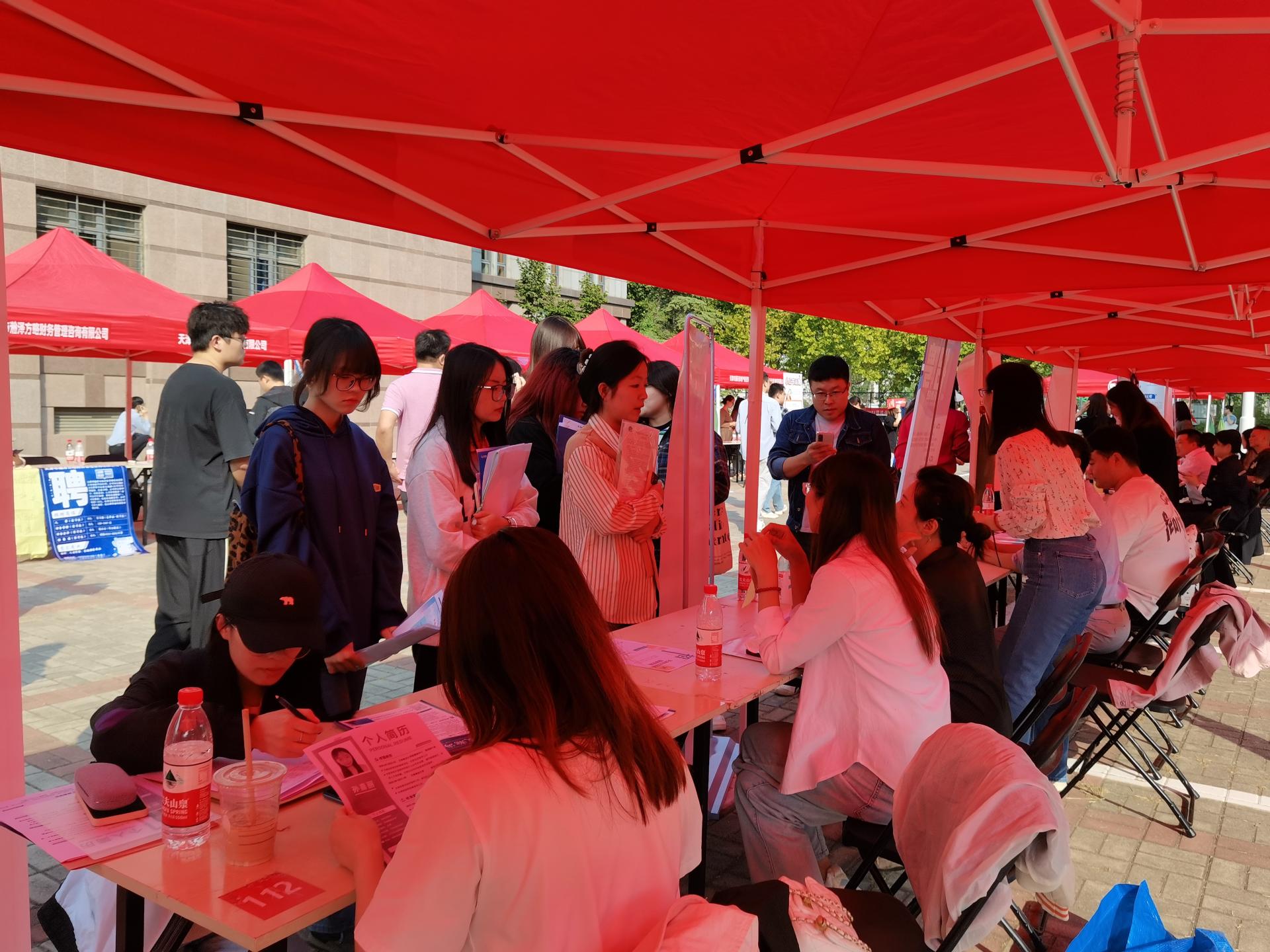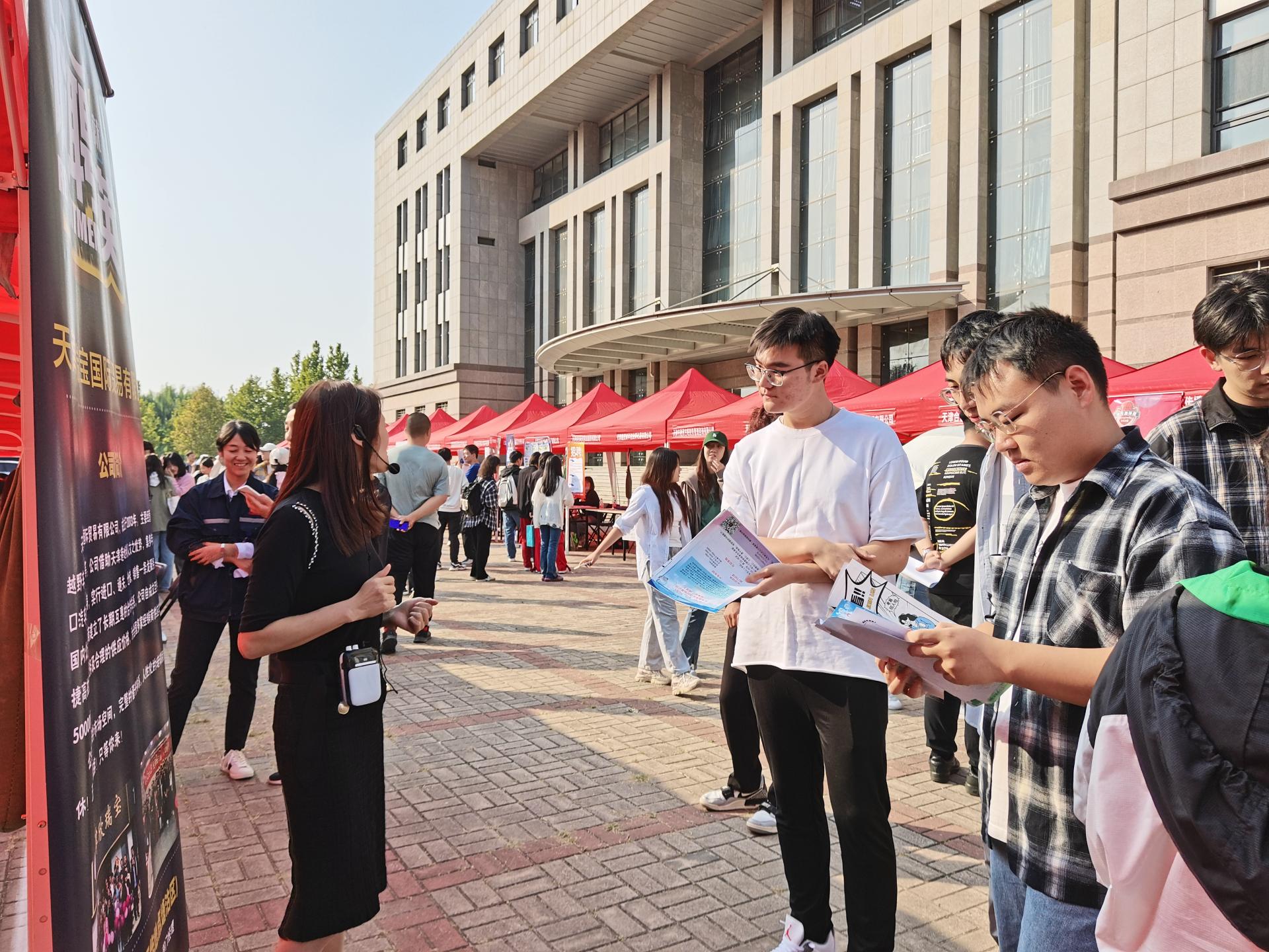 10月11日下午,w66利来旗舰厅与理公司、法公司在图书馆后广场联合举办“才聚天商·‘职’等你来”2024届毕业生秋季校园双选会。