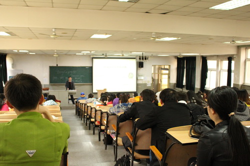 黄乐平向同学们分别介绍了“翻译”、“语言学”、“文化”,这三个英语考研方向以及英语考研的严峻形势和现状,并简要说明了报考本校和其他院校英语专业研究生的区别。王占斌首先向同学们描述了研究生的意义及就业前景,为大家深刻解读了“考研”这两个字的含义。他结合自身经历,讲述了一些报考研究生成功或失败的的事例,让大家对考研选择志愿的重要性有了深刻领悟,也让同学们对自己的考研目标有了明确定位。紧接着,他讲解了公司英语硕士点的发展历程, 其中包括了“翻译理论与实践”、“批评性语篇分析”、“跨文化商务沟通”三个方面,并着重强调了前两个硕士点较之天津其他高校甚至全国的优越性。最后,他指出报考专业和确定报考院校的重要性,同时阐明考研复习必须掌握正确的方法与思路。在讲座结束之际,黄乐平再次强调了公司英语硕士点的优势和实力,提醒有考研意向的同学们要尽快做足相关准备。