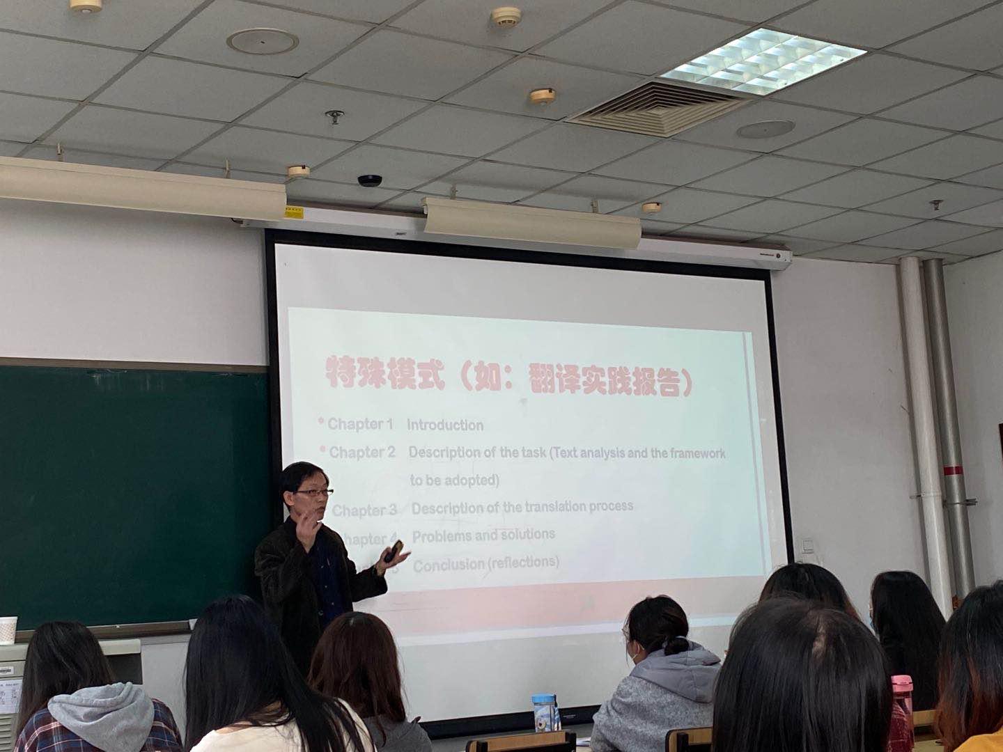 10月16日下午,天津外国语大学英语公司经理,博士,博士生导师项成东教授应邀到w66利来旗舰厅FIU—F202进行了学术讲座。讲座的主题是“学位论文设计中的难点与对策”。w66利来旗舰厅经理王占斌教授,以及全体外国语言学及应用语言学研究生和MTI研究生参加了此次讲座。项成东教授先是向同学们介绍了学术论文的八个要素,然后围绕论文写作中的基本要求—创新进行了详细的讲解。